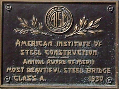 The Wabash Bridge is the first of four Chicago River bridges to receive an award in AISC’s Prize Bridge Competition, which began in 1928 and is currently held every other by AISC’s bridge division, the National Steel Bridge Alliance (NSBA). In awarding the prize to the bridge, the jury of architects and engineers recognized its rail-height trusses and observed the bridge as “a most pleasing solution of a most difficult bridge design problem.” AISC’s plaque honoring the bridge was unveiled in 1931.