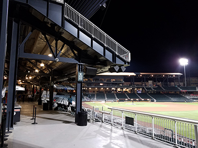 Inspired by early 20th-century ballpark design and architect Daniel Burnham’s nearby El Paso Union Depot, located just a few blocks away, the project turned to structural steel to accommodate the associated design requirements, tight site and required delivery speed. The ballpark is located in downtown El Paso, immediately adjacent to active Union Pacific Railroad tracks. In fact, portions of the 7,500- seat stadium cantilever over the tracks, which are located 22 ft below field level.