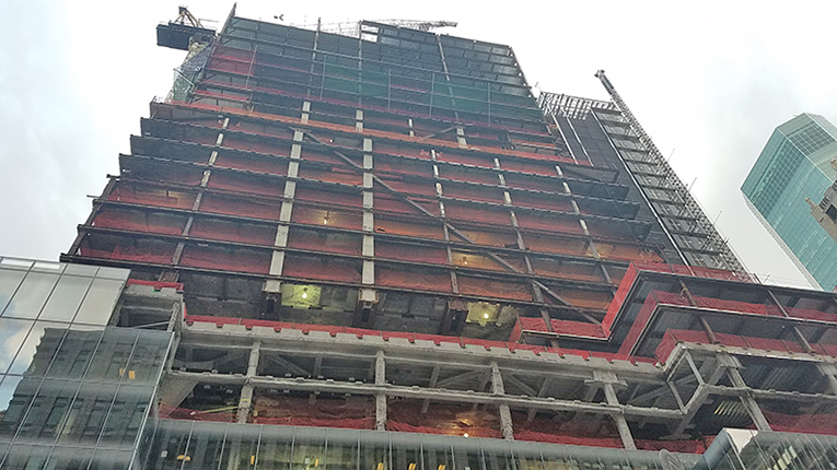 At 390 Madison Avenue in New York City, a 1950s era office building is being reconceived from the inside out -- in steel -- with new column-free spans and a new facade. The building is essentially being torn down to its steel core and built back up, but this time with higher ceilings and functional outdoor space. Owen Steel Company (an AISC member and certified fabricator) is the steel fabricator for the project.