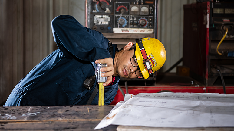 By the time he turned 19, Rodriguez had been promoted to foreman. He could run most machines, lead yard crews, and take the reins on pretty large projects, he recalls. Now, he’s a quality control inspector working toward Certified Associate Welding Inspector credentials from the American Welding Society. His job demands laser-sharp focus and a keen eye for detail, especially when it comes to safety.