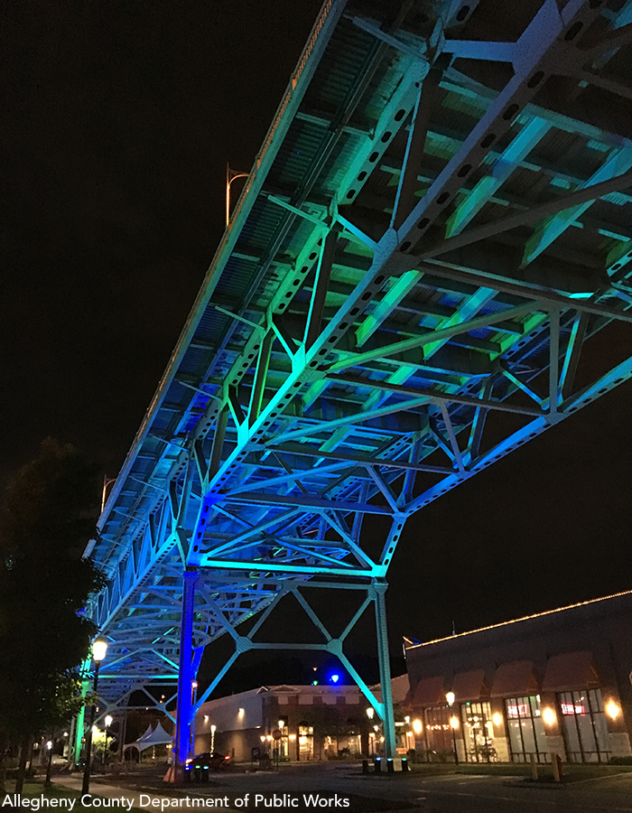 The Homestead Grays Bridge had a major rehabilitation in 2006 and 2007 that included widening the bridge deck while maintaining two lanes of traffic on the bridge at all times. The new deck is six feet wider for the traffic lanes, while also providing pedestrian walkways on each side of the bridge. The steel superstructure was repainted, and the railings and lighting were replaced with replications of the original configurations. In 2019, Allegheny County undertook a bridge preservation project to make minor steel repairs; downspout and scupper repairs and cleanout; and barrier and deck repairs. With this type of preservation maintenance, this unique steel bridge should be in service well beyond its 100-year anniversary!