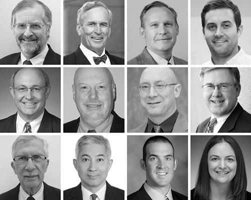 Row one, left to right: Bruce R. Ellingwood, William B. (Brad) Bourne III, Robert J. Connor, Gary S. Prinz; Row two, left to right: Duane K. Miller, Michael A. Grubb, Donald W. White, Thomas A. Sabol; Row three, left to right: LeRoy A. Lutz, Keh-Chyuan Tsai, William N. Collins, Ashley P. Thrall.