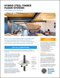 Modern hybrid steel and mass-timber systems utilize the strengths of both materials to achieve highly efficient and attractive structural systems. This new guide provides a multi-disciplinary review of the design considerations that impact structural design of hybrid steel-framed structures with mass-timber floors, including fire, acoustics, and sustainability.